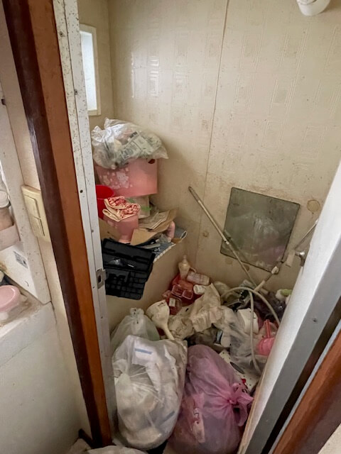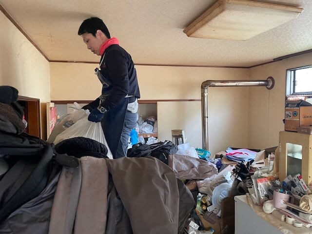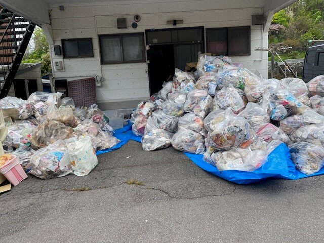 ゴミを貯めておくスペースがないため、袋詰めしては玄関に待機させているスタッフに渡し、外に搬出していきます。1階だったからスムーズに進めることができました。